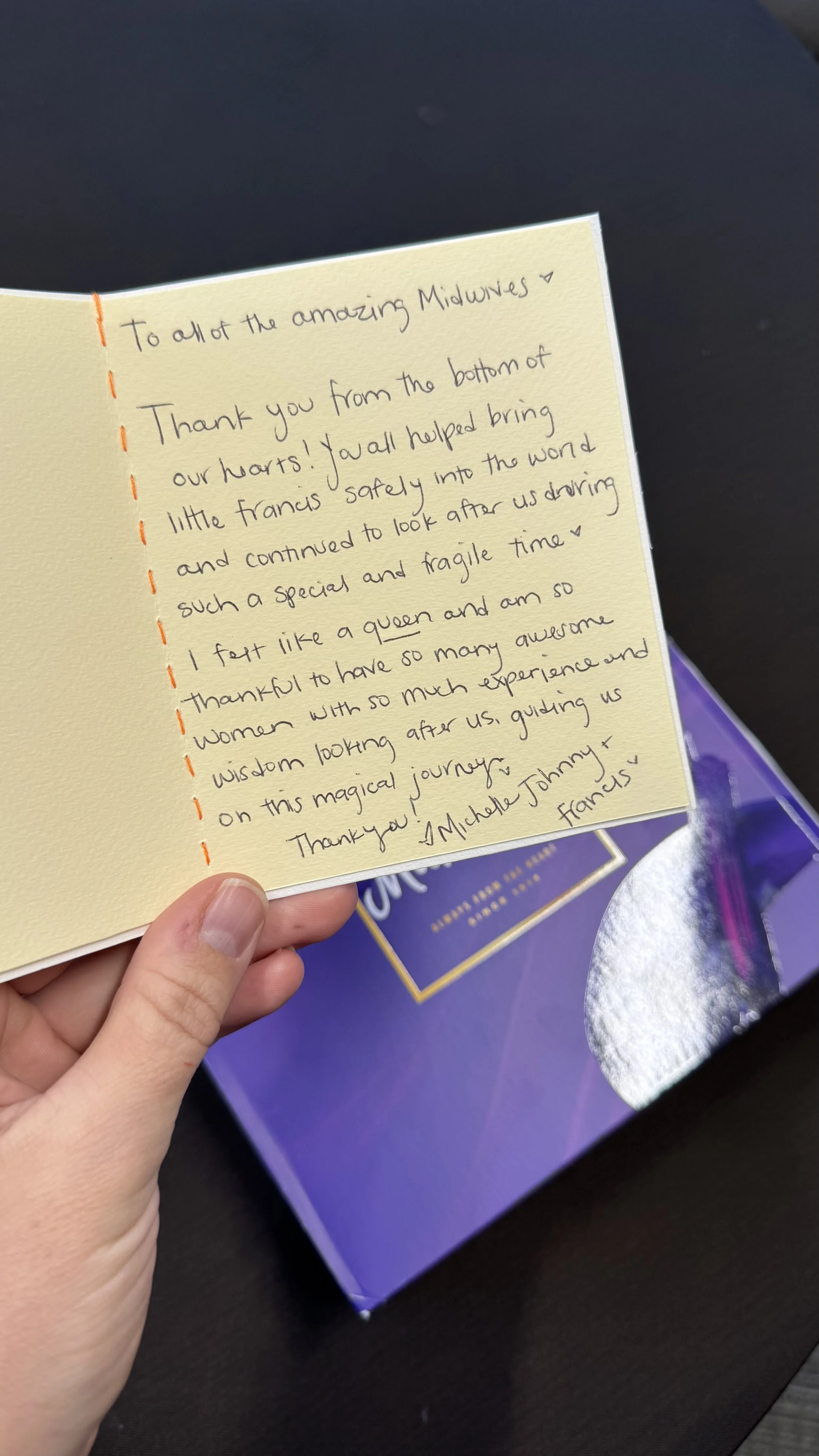 To all the amazing midwives. Thank you from the bottom of our hearts! You all helped bring little Francis safely into the world and continued to look after us during such a special and fragile time. I felt like a queen and am so thankful to have so many awesome women with so much experience and wisdom looking after us, guiding us on this magical journey. Thank you!"