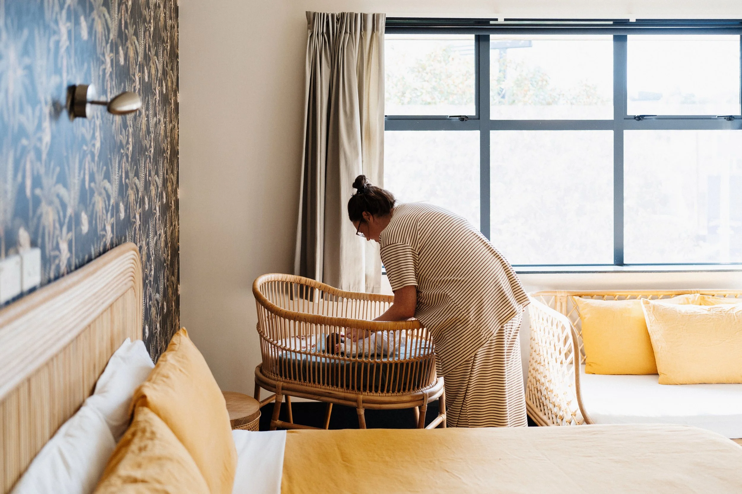 Most rooms feature a comfortable queen-sized bed, while three rooms are equipped with two single electric beds (which we try to reserve for those who have had a caesarean birth). You’ll find everything you need for your stay including nappies, wipes, maternity pads, changing pads, and a bassinet for your baby, as well as a TV, mini fridge, tea and coffee facilities, and hair dryers in the bathroom.
